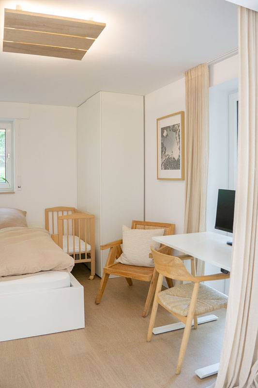 Stabiles und schnelles WLAN sowie ein extra Schreibtisch und Stuhl geben Raum für Fokus und klare Gedanken. Damit sich auch die Kleinsten rundum wohl und geborgen fühlen, stehen ein Baby- oder Kinderbett sowie ein Hochstuhl zur Verfügung.